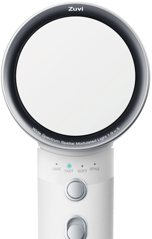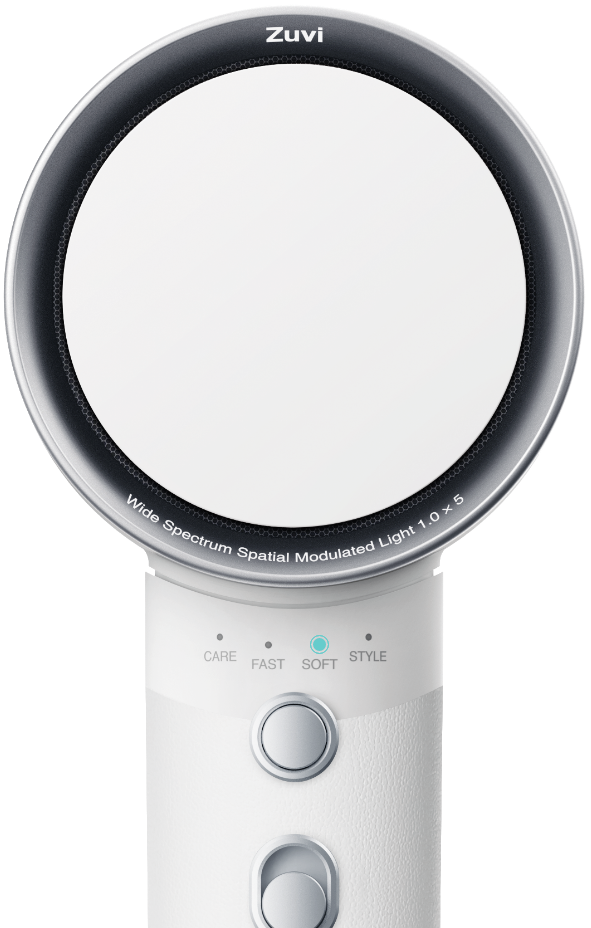 Seleccione su modo favorito y use su secador de cabello Zuvi Halo sin ningún accesorio para aprovechar los beneficios de la tecnología LightCare™ para un cabello más sano y fuerte.